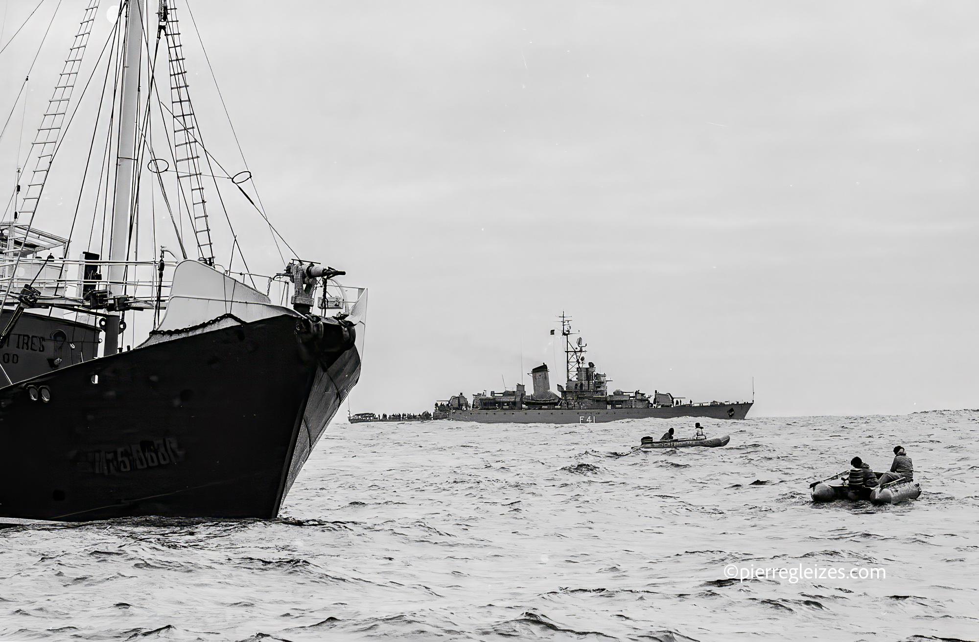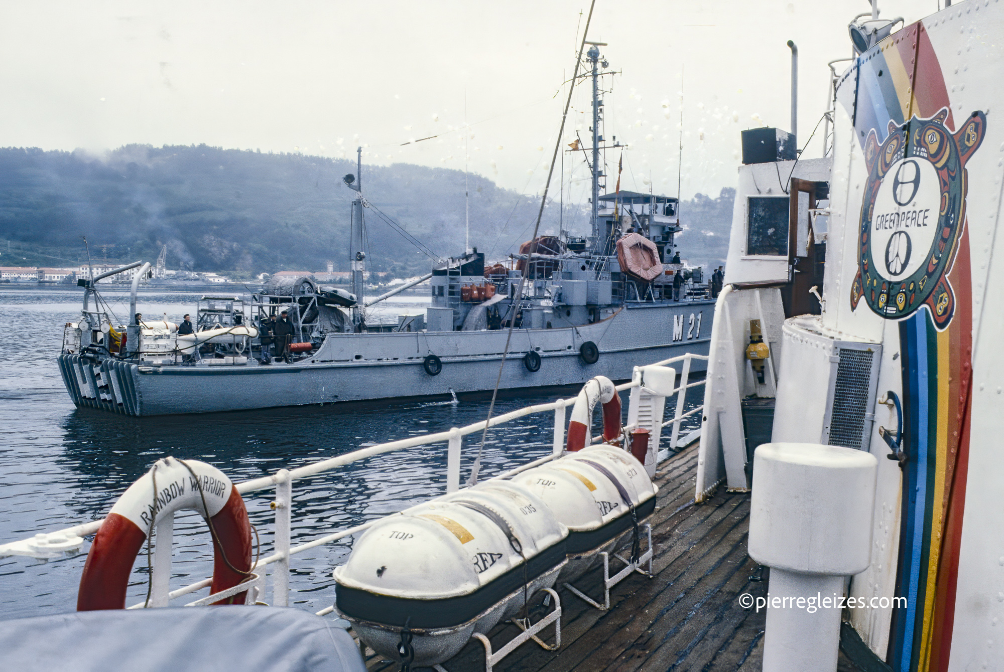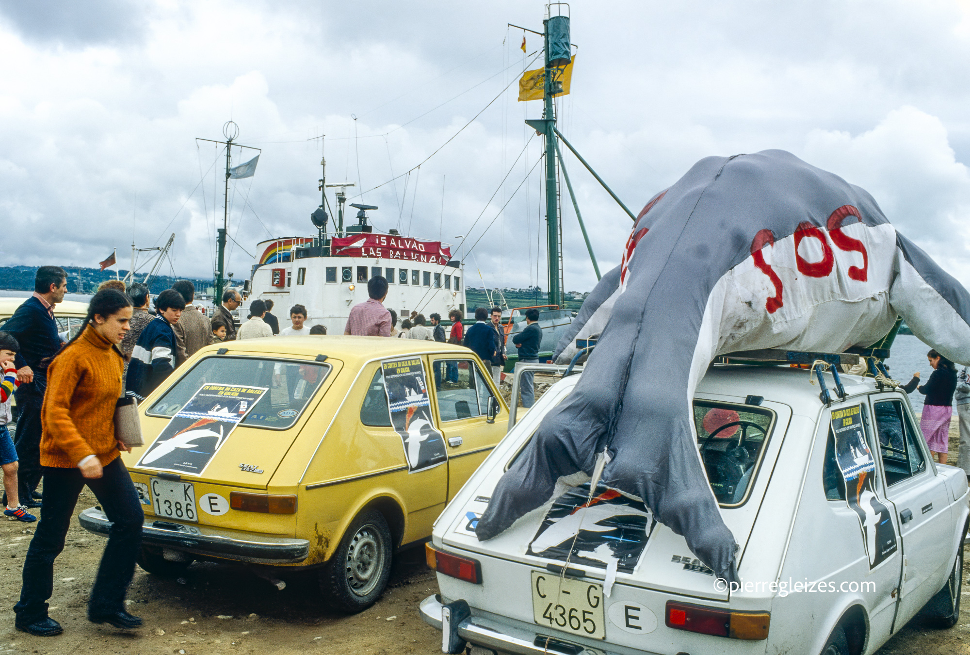 La campagne suivante sera plus longue ; six mois d’intenses péripéties en Espagne. En 1979, les Espagnols ont tué 429 baleines au large de leurs côtes. « On est jeunes, on a le feu sacré. On croit que les baleines font partie de l’héritage commun de l’humanité, on n’est pas d’accord avec leur extermination, et l’on est bien décidé à le faire savoir… »2. Cette aventure s’est terminée par une évasion rocambolesque du port militaire d’El Ferrol et par un moratoire mondial contre la chasse à la baleine voté par la Commission baleinière internationale dès 1982. Ce triomphe est gravé en lettres d’or sur la longue liste des victoires de Greenpeace.